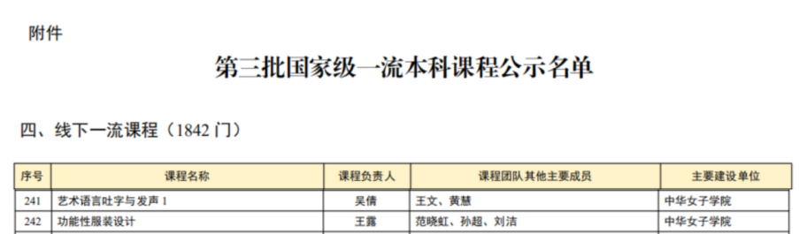 8月21日,教育部正式公示第三批国家级一流本科课程认定结果,我校《艺术语言吐字与发声1》《功能性服装设计》2门课程获评线下一流课程,实现了我校在该类别国家级一流课程“零的突破”。