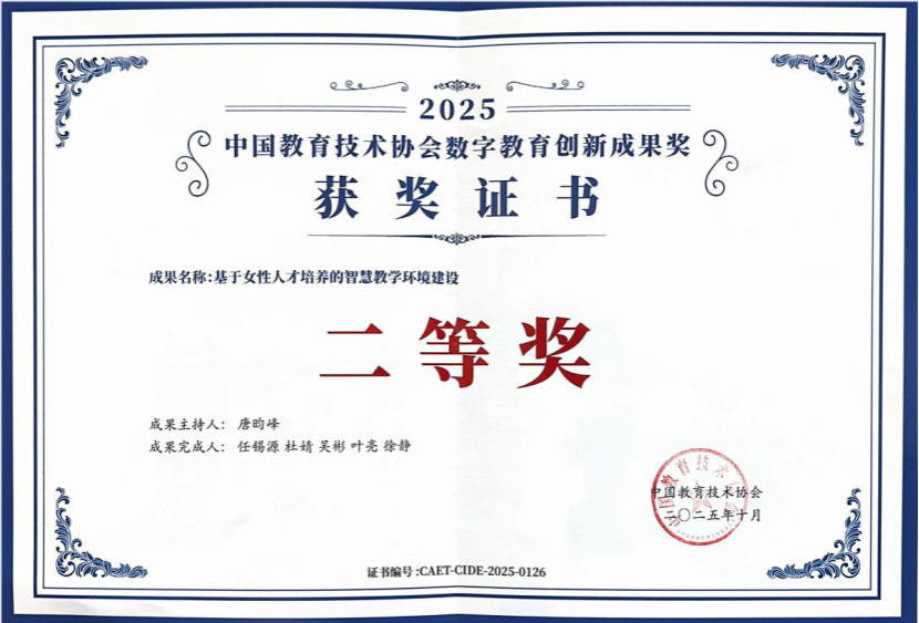 “十四五”期间,数信学院深入贯彻落实国家教育信息化发展战略,全面推进教育信息化建设工作。以有利于强化“以女性学习者为中心”,有利于推广小班化教学、混合式教学、研讨性教学培养学生“成长型思维”,有利于数字化、智慧化教学模式的探索,丰富课堂形式,有利于实现一流课堂育人,切实提高课堂教学质量,四个有利于的指导思想作为抓手推进智慧教学环境的建设工作,以技术为媒介赋能女性学习者,此次获奖充分彰显了我校在数字教育领域的创新探索与育人成效。
